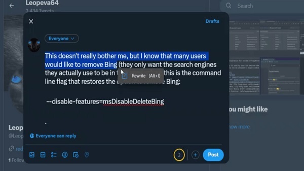Microsoft Edge වලදීද Bing AI සමග text සැකසීමේ හැකියාවක්